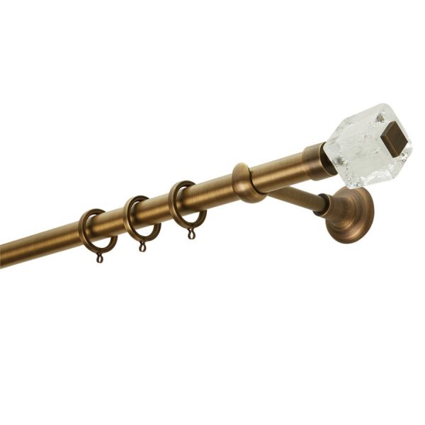Ανοξείδωτη κουρτινόβεργα σε μπρονζέ με κρυστάλλινα άκρα Murano, διαθέσιμη σε σωλήνα Φ25.