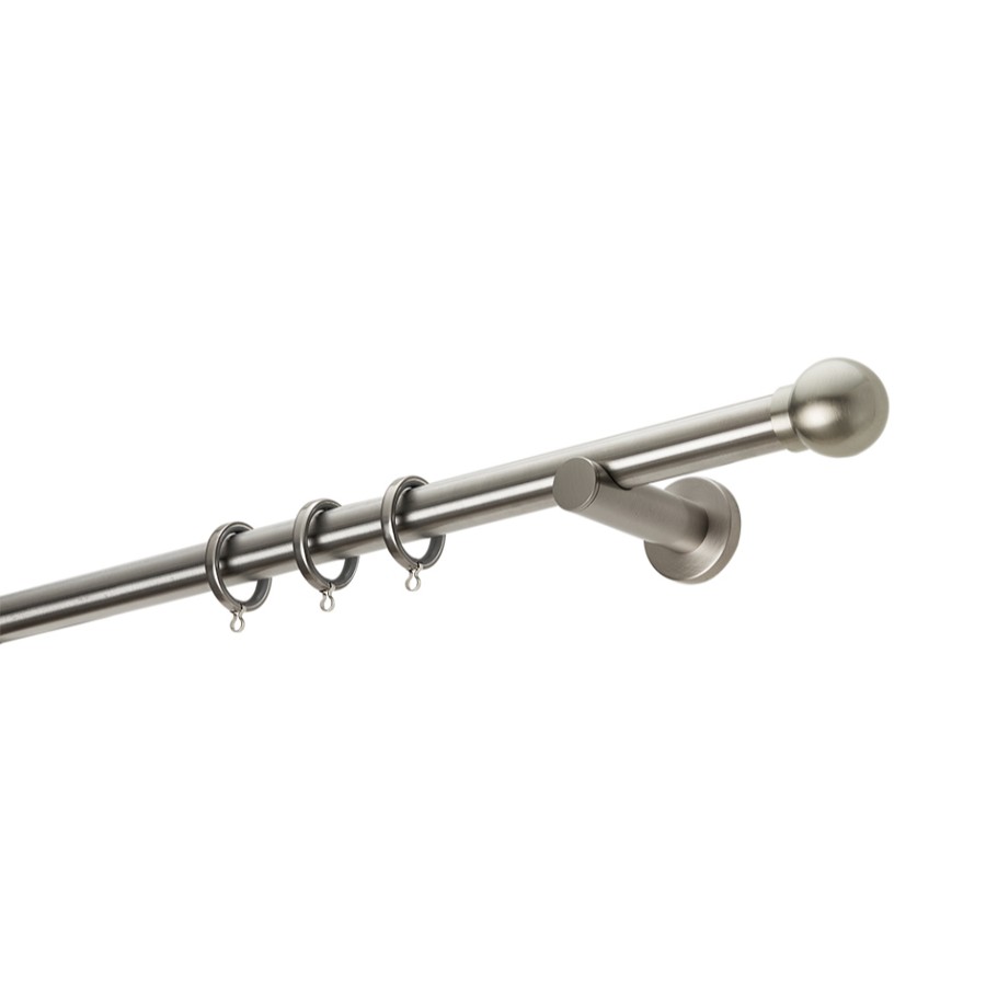 Ανοξείδωτη κουρτινόβεργα σε νίκελ ματ, διαθέσιμη σε σωλήνα Φ25.