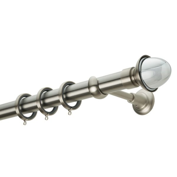 Ανοξείδωτη κουρτινόβεργα σε νίκελ ματ/χρώμιο, διαθέσιμη σε σωλήνα Φ35.