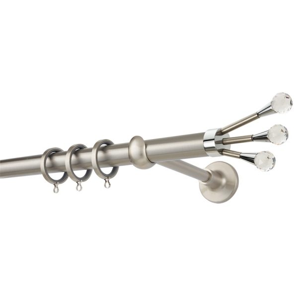 Ανοξείδωτη κουρτινόβεργα σε νίκελ ματ/χρώμιο με κρυστάλλινα άκρα, διαθέσιμη σε Φ25.